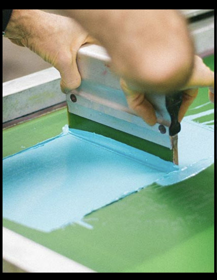 This technique uses color blocks like block screen printing, but with a dot pattern for added texture and visual effect.